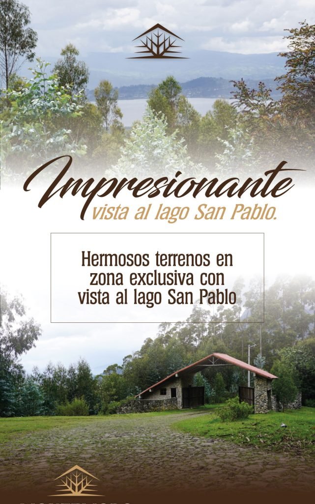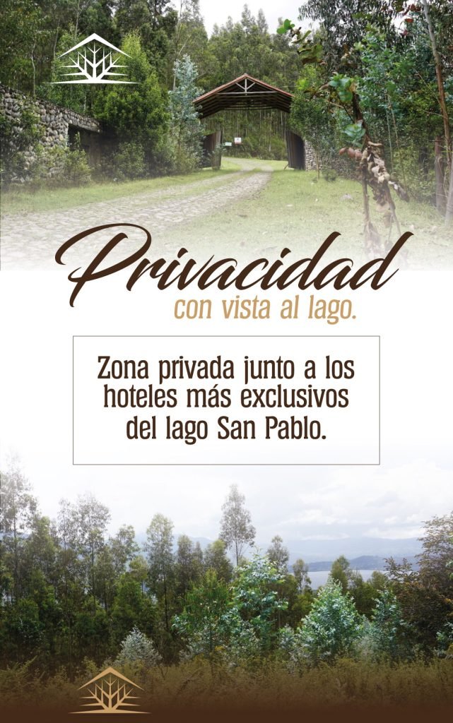 Con una vista excepcional del Lago San Pablo y el Imbabura, esta urbanización de lotes de una hectárea o más, es el objetivo de las familias que quieren pasar sus fines de semana en un lugar rodeado de belleza natural, cerca a todo pero lo suficientemente alejado, como para sentir la paz que brinda la naturaleza. Dentro de sus límites, cuenta con dos hoteles de primer orden. Este proyecto tiene lotes de venta.